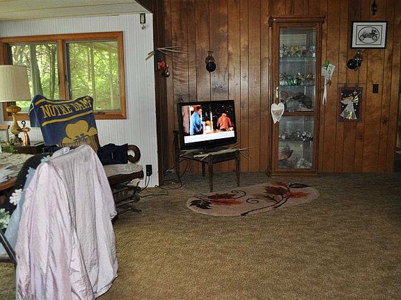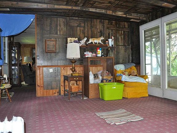 Very secluded and private! One bedroom mobile home with a 15x15 foot sun porch, several nice buildings heated with concrete floors and overhead door. Situated on 2.30 acres with pond in backyard.