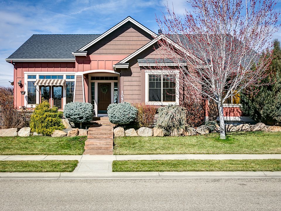 Well appointed home offering Boise styled indoor/outdoor living w/a delightful courtyard off the eating alcove surrounded by windows. Private 1/5 acre lot w/no side or back neighbors & a backyard straight out of HGTV w/tremendous covered patio & designer lighting. Elegant finishes include plantation shutters, soaring ceilings, hardwoods & expansive master suite. Smart layout with great room, split bedrooms, tons of storage, media & bonus rooms for relaxing, & an over sized 3 car garage with epoxy floors.