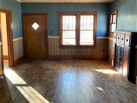 Located on a corner lot with a detached garage, fenced back yard & storm shelter (outside entry). Hardwood floors in two bedrooms, hallway & living room. Paneled walls in living room with a chair rail. Amenities include laminate on former kitchen floor that could be used as a dining area. Kitchen has a double stainless sink plus a refrigerator & gas cooking range. This property selling in "AS IS" Condition with no warranties expressed or implied.