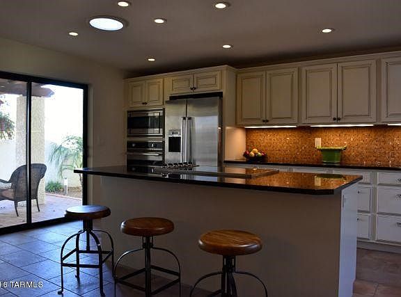 Luxurious patio home in Oro Valley Country Club updated with fine finishes throughout. This home features an open kitchen with large island including Viking and Bosch appliances. The living room features a floor to ceiling hand plastered fireplace, wet bar and sliding doors to the outdoor living space. The private yard features lush yet low maintenance landscaping, patios and a built-in fountain that is great for relaxing and entertaining guests. The luxurious master suite has vaulted ceiling, a spa like bathroom with a large shower, expansive vanity and a spacious walk-in closet. To finish off this exquisite property you have two-year-old top of the line Lennox heating and cooling system. This home has an abundance of storage and closets throughout. Seller is a licensed agent in AZ.
