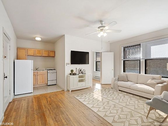 Live in the classic, sunny building in Lakeview. Plenty of street parking and close proximity to the Brown Line make this an ideal location for any type of commuter. This building features a secured entry, laundry on-site and its pet friendly. A bed plus additional furniture will fit nicely in this open layout. Cooking gas included, laundry on site, no security deposit, and pets are ok! Unbeatable location: short distance to CTA, bars, restaurants, shopping, parks and more. Multiple units available for rent immediately. Video tours available! There is a $350 move in fee (one time) and a $45 application fee that includes credit check. No security deposit required. All buildings are subject to a $35 monthly utility fee that covers water, trash, recycling, snow removal, and general maintenance. This building has cooking gas included. Street parking. Equal Housing Opportunity.