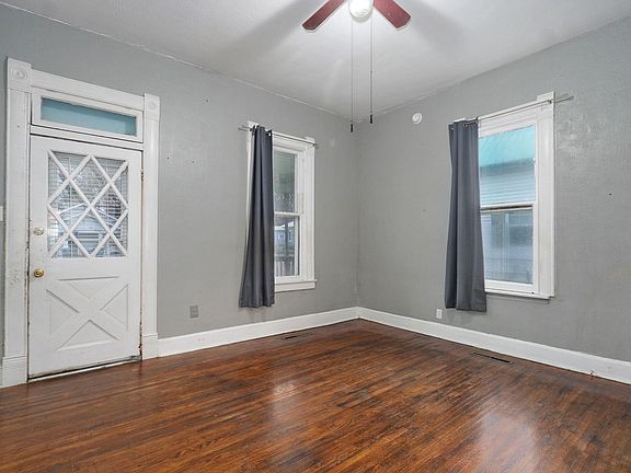 Great investment property. This 2 bedroom, 1 bath, and 2 extra finished back rooms, offers quite a bit of space for the price. Interior offers a nice living room with wood floors, easy access to the kitchen. The kitchen offers dishwasher, electric range, refrigerator, and brick floors. The finished bath offers walk in shower, vanity, and washer/dryer units that remain.