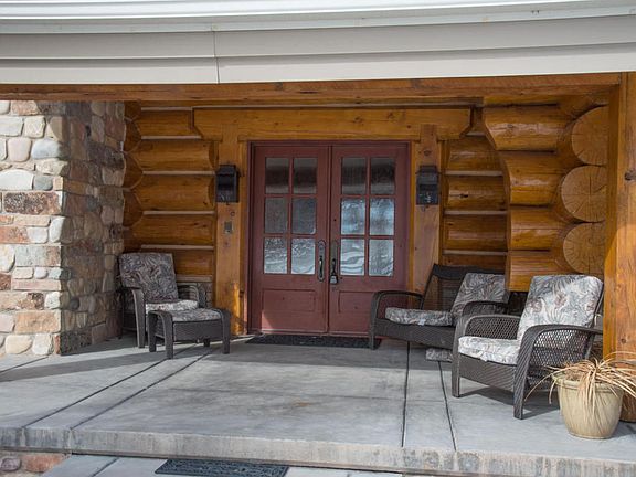Gorgeous log home on 7.5 acres with breathtaking views. There is a patio with a fire pit, a large deck, and a basketball court. Inside there are 5 fireplaces, vaulted ceilings, a large gourmet kitchen on the first level, and a second kitchen on the lower level. There is a theater room and lots of space fore entertaining guests or family gatherings. Every room has something unique to offer!
