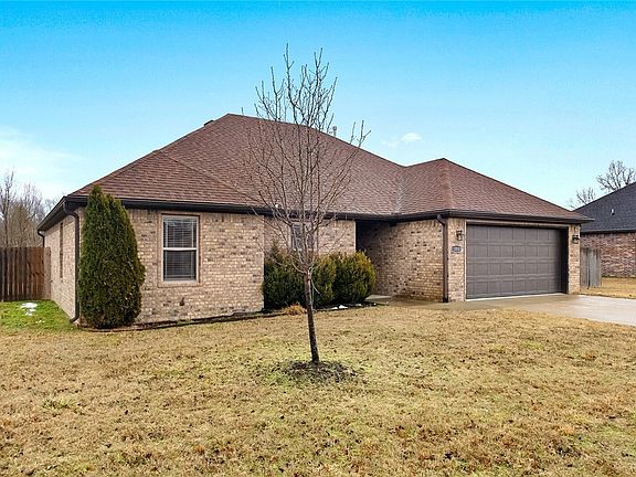 Discover a hidden gem in the neighborhood with this rare 4-bedroom home! Situated at the peaceful end of the subdivision, wake up each morning to stunning sunrises from your covered patio. The expansive backyard provides a serene escape, with unobstructed views. Enjoy low maintenance living with the full brick exterior and elaborate trim package, adding at touch of elegance to your newer home. Get active and explore the great outdoors with easy access to the Baker Hayes Urban Trail system and its MTB pump track. For a leisurely walk or jog, visit the nearby Pea Ridge National Military Park, where you can take in the beauty of nature on its 6.5 mile paved trail. Don't miss this unique opportunity to own a one-of-a-kind home in an unbeatable location for this price point!
