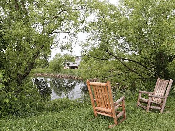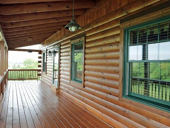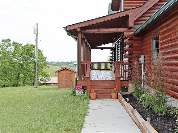 Enjoy panoramic views of nature at its best from this custom log home is situated on almost 6 acres which includes a large covered front porch and deck.1.5 story home w/3 BR's, 3 full baths, I half bath & a walk-out bsmt. 1st floor has a beautiful kitchen with an island/kitchen bar, pantry and dining area as well as stainless appliances that are included. The living rm has a gorgeous stone fireplace that is the focal point of the room. 1st floor owner's suite has a seated shower, raised vanities and walk-in closet. Laundry area has a utility sink. The half bath completes the line up for the 1st floor. The 2nd floor has 2 BR's and another bath as well as a loft which is great flex space. The WO bsmt has plenty of storage, a family rm. + a full bath. Other features include Anderson windows, KU electric, a 24 ft. above ground pool, hybrid zoned hvac, a storage building, a pond and the property is partially fenced. The entire home, porch and deck was just stained. Don't miss this one!