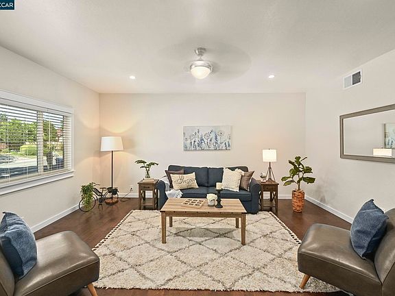 Beautifully Remodeled from head to toe. Updated 4 bedroom, 2.5 bathroom Single Story home within 1,959 square feet. Kitchen/Family Room combo. Gourmet kitchen with Quartz countertops & large Island with room for seating. Lovely light colored cabinetry with glass doors and self closing drawers as well as high end Stainless Steel appliances. Thor 6 burner gas range with oven. Built-in microwave in island. Hardwood floors & recessed lighting throughout. Both bathrooms have dual sinks. Primary suite has slider to the backyard and updated primary bathroom with walk-in closet and ceiling fan. Living room off entry is Sound insulated and can be used as a home theater or private home office. Dual Pane Windows. Freshly painted interior. Amazing Backyard with patio, lawn and a number of fruit trees including peach, plum, almond, pomegranate, lime, orange and guava pineapple. Ground Well on the property to irrigate the lawns & gardens. Desirable location, close to schools, Shopping, Farmers Market, Trails and Pleasant Hill Bart.