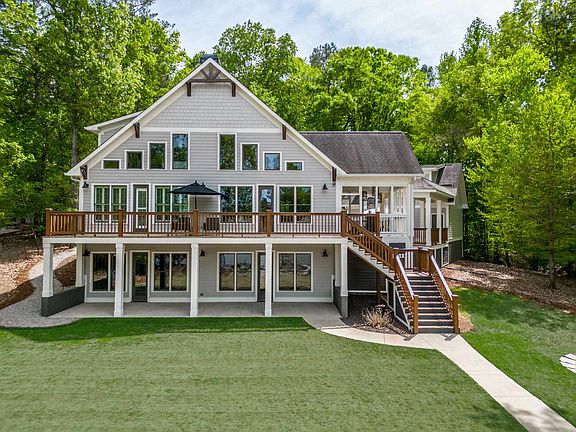 IMMACULATE LAKE OCONEE HOME WITH EXCEPTIONAL MAIN LAKE VIEW! This 5-STAR lakefront property is located conveniently in Morgan County near Sugar Creek Marina on a private 1.66 acre lot with 240+ feet of water frontage, private max dock and some of the best lake views Lake Oconee has to offer. Inviting courtyard entrance, covered porch, rear deck and patio all offer wonderful outdoor lake living. The house is in pristine condition and features an open floor plan, vaulted ceiling, hardwood flooring, living room with fireplace, custom kitchen with granite and stainless-steel appliances, master on the main with beautiful lake views and 2 bedrooms/2 bathrooms upstairs. Also has plenty of room for future expansion in the framed walk-out terrace level and large attic space above the detached 2-car garage. EVERYTHING AND MORE THAT YOU COULD WANT IN YOUR LAKE OCONEE OASIS!