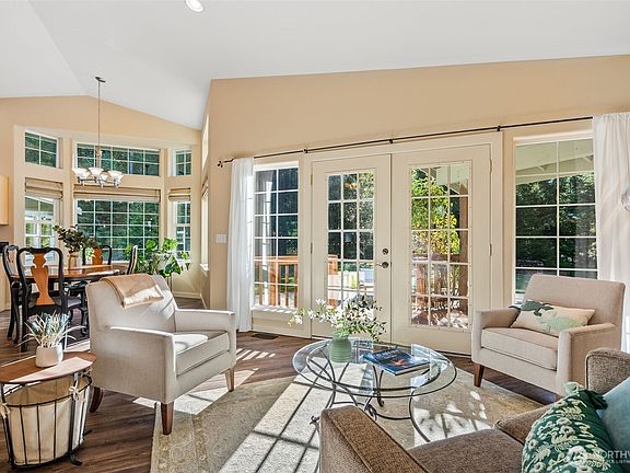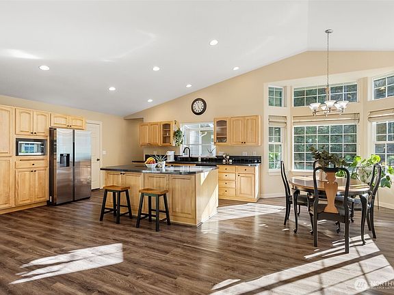 Tucked away in the trees of Olalla, this spacious rambler offers the perfect blend of comfort, function, and adventure! Inside, you'll find two primary suites, vaulted ceilings, and a chef's kitchen with a spacious island for gathering. The 3-car garage stands out with a custom 3rd bay featuring loft storage and project-ready upgrades, complemented by a detached garage ideal for projects, hobbies, or extra storage. Outside, enjoy a welcoming patio, a fire pit, and walking & biking trails on the property, while a gated circular drive and total privacy create a true escape. Just minutes from Banner Forest, Anderson Point Park, Olalla Vineyard & Winery, and Olalla Bay Market & Landing, with easy access to the Southworth Ferry.