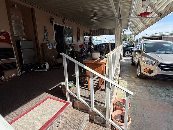 Welcome to this well-maintained 1995 park model home located at 10500 E North Frontage Road, Space P60, in the popular Caravan Oasis RV Park. This 11x35 home offers comfort, efficiency, and great outdoor living-perfect for seasonal or full-time enjoyment. Home comes with Golf cart! Inside, you'll find a 1 bedroom, 1 bathroom layout with thoughtful upgrades throughout. The living room features wood flooring, while the bedroom and porch are carpeted for added comfort. The kitchen comes fully equipped with a built-in microwave, electric stove, and refrigerator, plus the home includes an extra freezer for added convenience. Major improvements include a new heat pump (approx. $7,000) and new shingles installed just one year ago, giving peace of mind and energy efficiency. The home also features electric water heater, window screens on the exterior, and a separate room for washer and dryer. Enjoy outdoor living with a full-length patio, ideal for relaxing or entertaining. Space rent is $550 per month, making this an affordable option in a well-kept community. This move-in-ready home is a great opportunity to enjoy the Yuma lifestyle in a welcoming RV park setting.