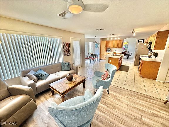 AWESOME FLOOR PLAN WITH BATH AND BED DOWNSTAIRS! LARGE ISLAND KITCHEN, TONS OF CABINET STORAGE! FIREPLACE IN FAMILY ROOM, BEAUTIFUL WOOD LOOK FLOORING! GREAT ARCHITECTURE HERE IN A BEAUTIFUL SUMMERLIN NEIGHBORHOOD. RAISED FOYER ENTRY, STUNNING STAIRCASE, DINING ROOM HIGH ARCH DETAIL IS GORGEOUS! 5 BEDROOMS, 3 BATHS HERE! BEDROOM & BATHROOM WITH SHOWER DOWNSTAIRS. OPEN FLOOR PLAN AND LARGE BACK YARD WITH FRUIT TREES AND DINING PATIO! DOUBLE DOOR ENTRY IS ELEGANT AND STATELY! SOARING CEILINGS RIGHT WHEN YOU WALK IN! SO STUNNING! LARGE MAIN BEDROOM WITH HUGE WALK IN CLOSET! YOU WON'T BELIEVE THE SIZE OF THE CLOSET! ABSOLUTELY AMAZING! LARGE ENSUITE BATHROOM WITH DUAL SINKS AND A BEAUTIFUL TUB TO SOAK YOUR CARES AWAY! GREAT LOCATION NEAR SUMMERLIN HOSPITAL AND SUMMERLIN PARKWAY. WALKING DISTANCE TO ELEMENTARY, MIDDLE, HIGH SCHOOLS AND PARKS! GREAT CUL DE SAC LOCATION! CLOSE TO SUMMERLIN PARKS, SHOPPING AND DINING! DON'T MISS THIS BEAUTIFUL HOME WITH AWESOME FLOOR PLAN!