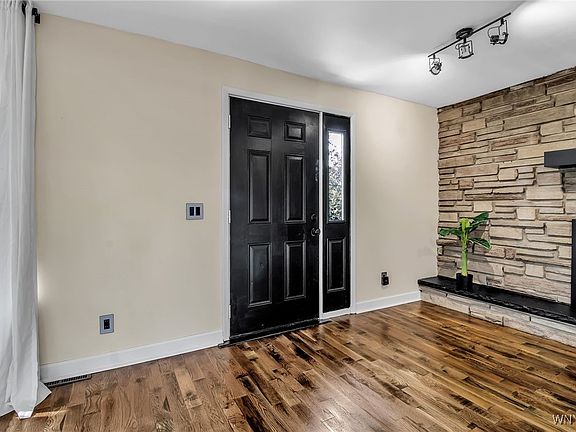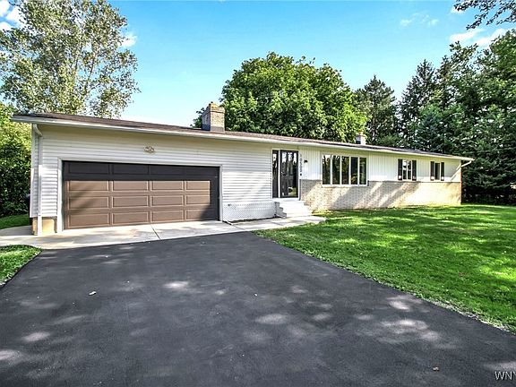 Charming 3 bedroom 1 bathroom ranch situated on .51 acres located in the Clarence Central School district. The open concept living room and kitchen boasts an elegant fireplace with various lighting features situated on a stone wall backdrop. The modern kitchen was updated in 2019 with granite countertops and stainless steel appliances. The kitchen / living room also have hardwood flooring and a spacious eat in area with sliding glass doors leading to a new deck and a large private backyard. The bathroom was renovated in 2020 with a tile shower, tile flooring, and new vanity with granite countertops. Furnace and central air conditioning replaced in 2019 along with updated lighting fixtures throughout. All three bedrooms are spacious and the house has 150 AMP service. The property also features a 2.5 car garage and a full dry basement perfect for storage or refinishing. A newly sealed blacktop driveway, updated windows and roof ( 2012 ) add to the maintenance free exterior. Showings begin immediately. All appliances INCLUDED. garage refrigerator INCLUDED. Curtains INCLUDED. Offers, if any, to be reviewed on Monday, September 9th by 3:00pm. Will allow escalation clauses.