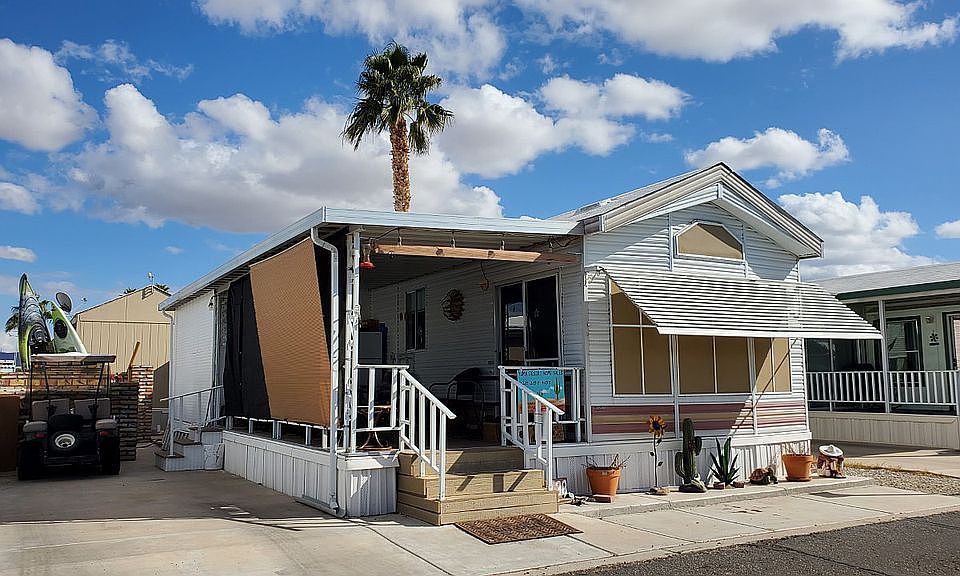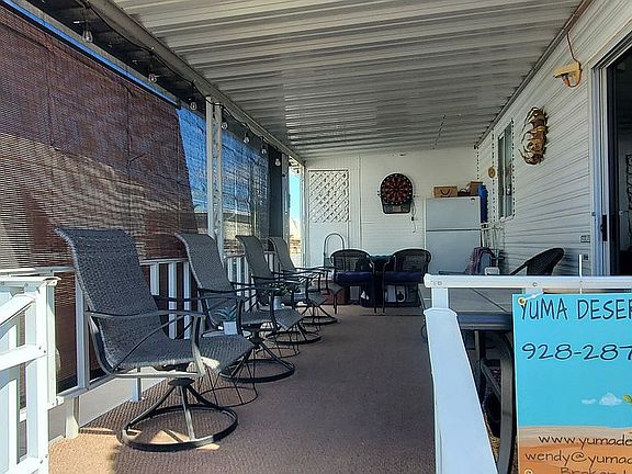 55+ Park Caravan #P38 10500 North Frontage Yuma AZ 1994 Redman 12x34 1 bedroom, 1 bathroom Fully furnished 1 Bedroom with Queen Bed and large closets 1 Bathroom / Tub/Shower Reverse Osmosis System Electric range/oven Above range microwave New fridge Extra fridge on covered deck Extra storage room (could become a AZ room) 2 Storage Shed Built in brick dog kennel Heat pump Wonderful Neighbors!!