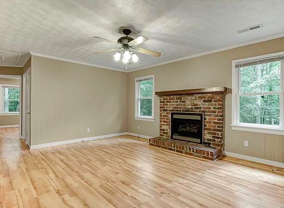 Handsome brick ranch with an attached 2 car rear entry garage is nicely situated on a generous 1.3 acre lot. Freshly painted and move-in ready; this home also boasts new laminate wood flooring, a large formal dining room with crown molding, a living room with gas fireplace and ceiling fan, and an updated kitchen with tile flooring, Corian countertops, and a new dishwasher.