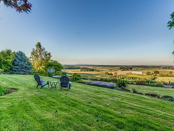 Views for miles! Morning Sunrises over Mountains,Vineyards,Fertile Willamette Valley Farmland! Paved Road to this Custom Home w/ Vaulted & High Ceilings - NW Comfort in the Great Rm w/ fireplace, extensive deck - Main Level Living & Daylight basmnt perfect for guest quarters/dual living. Oversize garage & heated storage - Dayton address, but minutes to Salem, Newberg and McMinnville - Shed w/water - Hobby Farm/Vineyard Potential.