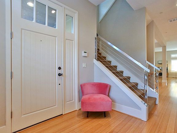 Luxury Townhouse w/many upgrades throughout. Gourmet kitchen w/stainless steel appliances & granite counter tops. Formal living room w/built-in bookshelves & fireplace. Beautiful bamboo floors, central vacuum system, custom wood blinds. Downstairs family/media room. Built-in cabinets & counters in garage. Large covered patio w/ceiling fan & view of trees. Relax in the community pool & clubhouse. Blocks from shops & restaurants.