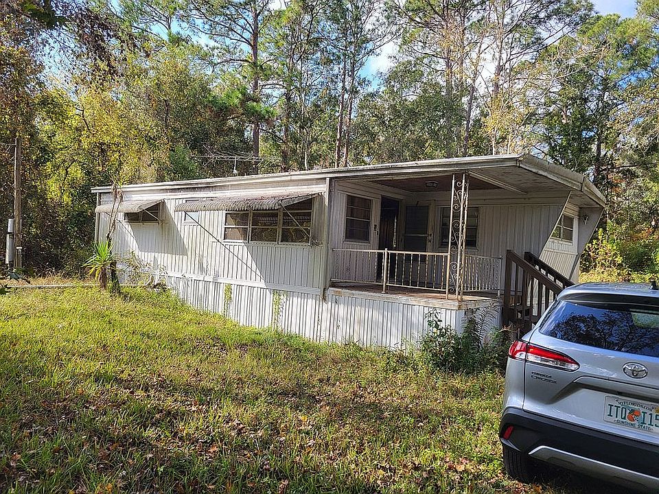 The triple lot (its actually 4 lots) is what makes this property shine. It's also on a paved main road and still very quiet while being a short 5-10 min drive to Publix/Aldi etc. The trailer itself is extremely solid and was strapped to the foundation extremely well and has withstood all of the hurricanes since placed at this site in 1996. Dear, hogs, and bear have all been seen on this property!