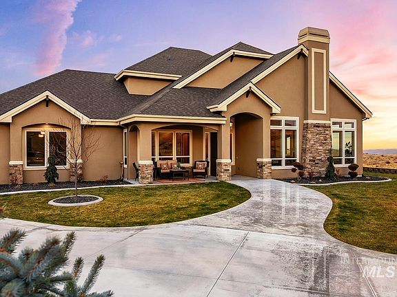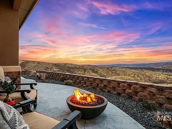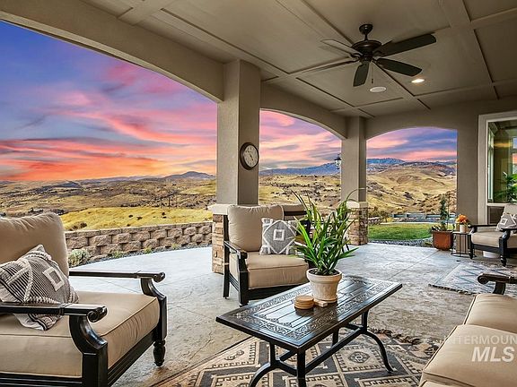 Nestled in the Boise foothills in a small gated community, this hilltop home is situated on 10+acres of picturesque landscaping rolling hills rugged terrain and breathtaking views of the surrounding valley. Boasting a gourmet kitchen filled with high end appliances and impeccable finishes with attention to detail, truly a chef's delight. The dining area is ideal for family dinners and the open-concept living area, with its majestic fireplace, exposed beam ceilings and awe inspiring windows is perfect for entertaining. The master suite is bright and airy and a spa-like master bathroom includes in floor radiant heat heated towel racks oversized tub and large walk-in shower. The impressive patio features a complete outdoor kitchen and hot tub. All set against the backdrop of the stunning surrounding views, it is the perfect spot to spend evenings enjoying spectacular sunsets or gazing at the stars. A 1500 sq/ft RV shop heated and insulated for year-round use is the perfect place to store all your toys and gear!