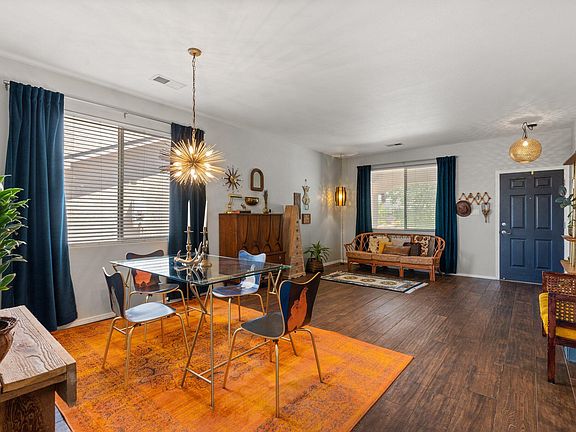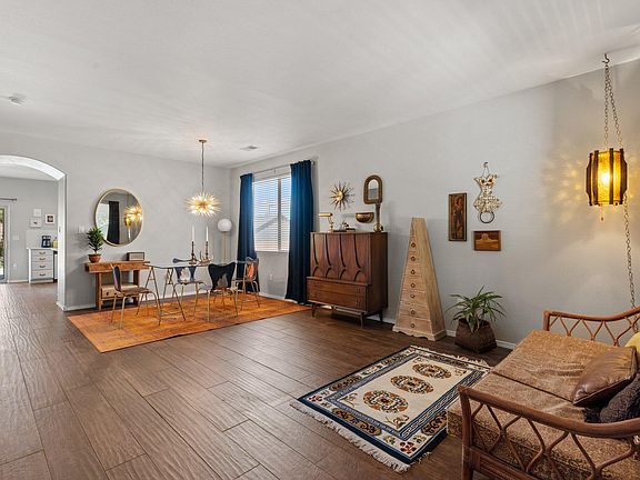 Tastefully styled w/ a mid-century modern flair, this Ventana Ranch property is well appointed & move in ready! Dark wood-tile flooring in the living areas & kitchen on the main level. The kitchen is open with white cabinetry, white quartz countertops, brass hardware, stainless appliances, trough sink & mini-subway tile backsplash! All bedrooms & a well-sized loft are located upstairs. The primary suite has a French Door entry, window seat w/ views, the primary bathroom has a garden tub, separate shower, double sinks & large walk-in closet. The backyard has cherry, pomegranate & peach trees- there's also grape vines, rosemary + open & covered patio spaces. Located with easy access to trails, parks, Paseo Del Norte, restaurants & more! Schedule your private showing w/ a Realtor today!