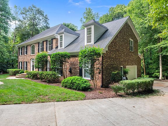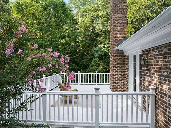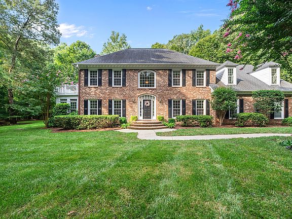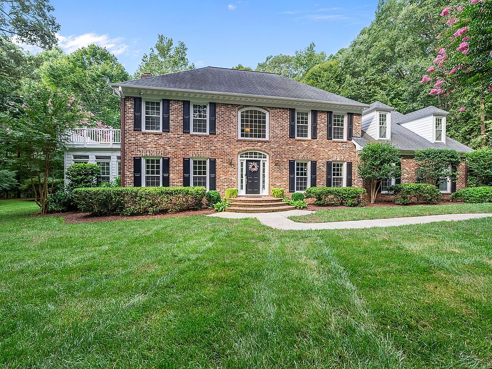 This lovely 4 bedroom, 4.5 bath Georgian style brick home is situated in a cul-de-sac on over 6 acres of land with beautiful hardwoods in one of Raleigh's most desirable neighborhoods -Stonebridge. The two story, open foyer features a marble floor backed by a curved staircase. Formal dining with access to the kitchen through double doors overlooks the beautifully landscaped front yard through the large front windows. Formal living room leads to a bright and beautiful sunroom with coffered ceilings, 2-way fireplace, and custom built-ins surrounded by floor to ceiling windows. Two walkthroughs lead from the sunroom into the family room with Brazilian teak floors and fireplace. Windows galore from the sunroom, family room and into an updated kitchen with a sunny breakfast nook make this home bright and beautiful. The updated kitchen features solid maple white cabinets with soft close drawers, pull-outs, Lazy Susans, glass cabinet doors, high-end granite countertops, tile backsplashes, and a tile floor. Additionally for convenience there is a separate desk area with more cabinets and storage. Private main floor guest/ in-law suite with new carpet, updated full bath, and walk in closet. Expansive deck with 898 sq ft and new low maintenance railings is perfect for entertaining or enjoying quiet evenings overlooking the woods and listening to the sounds of nature. Spacious owner's suite has its own private balcony and two gorgeous full baths. No more sharing a bathroom with your loved one, this home features two primary bathrooms, yes, two full primary bathrooms! Both baths are adorned with tile flooring, marble countertops, and zero entry frameless glass showers. In addition to the beautiful shower, ''Her'' bathroom features a large soaking tub overlooking the massive backyard. The primary bedroom also features two walk-in closets, both with custom built-in shelving. Two additional extra-large bedrooms with lots of windows and large closets, or one could be used as a bonus room. Along with the two secondary bedrooms on the second floor, there is an additional sunny room, featuring a full closet, which could be used as an office or flex room. A beautifully tiled secondary bath features marble countertops, sky light, built-ins, and additional cabinet storage. A large, convenient laundry room includes additional cabinets, storage closet, and utility sink. Spacious walk-up attic features over 700 sq ft of additional storage or an endless amount of possibilities. Extra-large two car garage highlighted with the large separate workspace, built-in shelves, and additional utility sink. Fabulous neighborhood amenities include a clubhouse, 2 pools, tennis and pickleball courts, playground, soccer field, a lake, and walking trails. Low HOA dues and no city taxes. This conveniently located home has a private setting and is only 5 minutes from I540 and 5 miles from the Falls Lake docks. ***$3000 in lender paid closing costs with preferred lender: Dan Stanton with Summit Funding (919)422-3281 dan.stanton@summitfunding.net