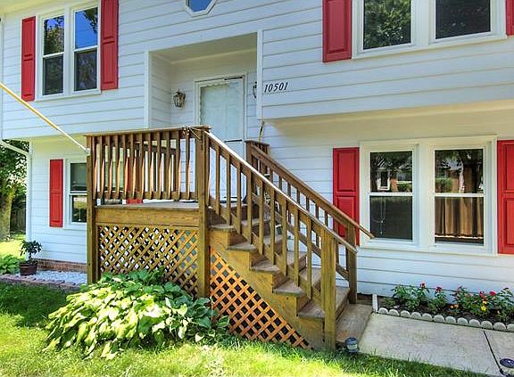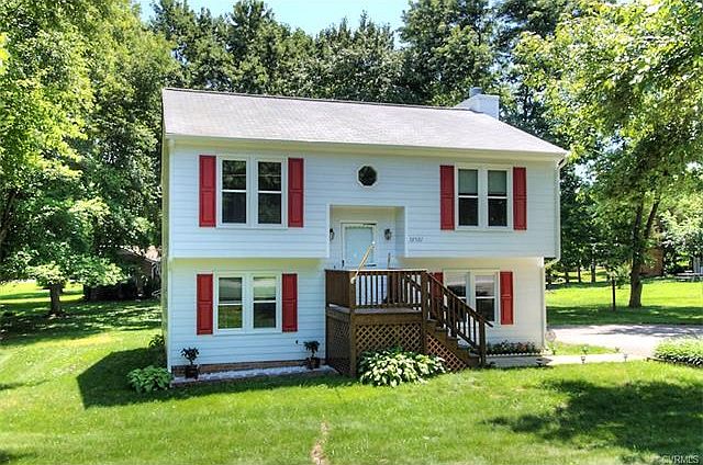 Cute as a button! Spacious floor plan with nice layout! Open two story foyer gives lots of light and welcomes you as soon as you enter! Upper level offers a nice size living room with new carpet. Dining area off of kitchen with new flooring and ceiling fan. Updated kitchen includes new countertops, fresh paint, and newer appliances that convey. Two bedrooms with new carpet, ceiling lights, and one has double closets (2nd master potential). Updated full bathroom in hallway with new flooring, fresh paint, new fixtures and vanity. On the lower level is a large family room with ceiling fans, a brick hearth wood burning fireplace, and sliding glass doors to deck. Laundry room is located off of family room and the washer and dryer convey. Two additional bedrooms on this level, both with new carpet, fresh paint, and closets. An additional updated full bath with same updates as the other. Seller has repainted the interior and exterior. Windows, roof, air handler all replaced in 2007. Paved driveway with turn around room, New gutters, two detached storage sheds, gorgeous yard that is nicely landscaped. All outlets replaced, and new interior doors.