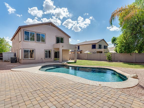 This beautiful 3 bed, 2.5 bath home will not last long with everything it has to offer! Beautiful upgrades, huge lot size, and a private oasis as your backyard! Inside, there is gorgeous laminate flooring and tall baseboards that carry throughout the entire first floor. With fresh new carpet and paint throughout and a brand new HVAC and water heater, this home feels brand new! The den will make an excellent office or could easily be transformed into another bedroom. Inside the kitchen, there is dark wood cabinets, walk-in pantry, and a stylish backsplash that ties the room together! Upstairs there is a huge loft that would make a great game room or play area for the kids. The options are limitless! All of the bedrooms reside upstairs and come with excellent closet space. The master suite has a spacious vanity with double sinks, a large walk-in closet, and a tub or shower- take your pick. The backyard has fun written all over it! The sparkling pool has a giant Baja step; even the little ones can enjoy! Enjoy playing catch in the lawn or relax under your extended covered patio. Don't wait. Schedule your showing today!