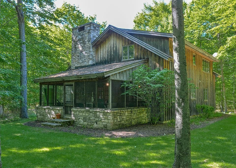 A storybook cottage in the woods, this charming and solidly constructed home combines local fieldstone and board and batten cedar siding for a timeless look. Imagine gathering before the massive wood-burning fireplace in the vaulted great room and lingering on the spacious screen porch on summer afternoons. With 4 bedrooms (including an expansive bunk room) and 3 full bathrooms, the home offers plenty of room for friends and family to gather. Nestled in hardwoods on over 5 acres with a private tennis court, the setting inspires outdoor fun and relaxation. This quiet setting on the north side of Ephraim also provides convenient access to village activities both in Ephraim and Sister Bay. Make this your Door County getaway!