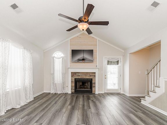 Welcome to low maintenance living with all of the benefits of a single family home in the highly sought after Woods of Glenmary! This beautiful 3 bedroom, 3 full bathroom patio home is situated at the end of the street and boasts a gorgeous green space view from the windows or from the garden patio. When you enter the home you will notice the soaring vaulted ceiling that features a fireplace with stone and wood finish and wainscoting along the walls. This design was custom hand made by a master wood craftsman and adds a variety of textures to the living room. The kitchen boasts plenty of cabinet space and has a pass-through to the living / dining area. The laundry room is custom designed for maximum use of space including a pantry, storage, drying & folding area, and even room for