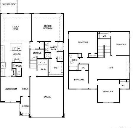 2539 - The Lombardi This two-story, 5 bedroom, 2.5 bath home features 2539 square feet of living space. The first floor offers an inviting entry way, open to the dining area that flows into a large eat-in kitchen and spacious living room. Just off the living room is the master suite which features a separate tub and shower and large walk-in closet. The second floor highlights a generous loft space, a full bath and four bedrooms, three with walk-in closets. Also included is a covered patio and 2-car garage.