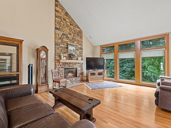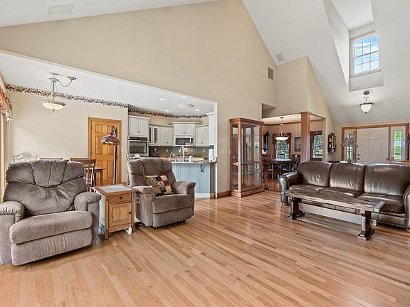 ***Open House Sunday Sept 17th 2-4pm*** Beautiful ranch on WALKOUT basement in Leo Schools! Private backyard backs up to common area and St Joe River. 1929 sq ft ranch on full basement features Grabill Cabinets in kitchen, double oven, all appliances reman. Open sight lines on main floor include great room open to both eat-kitchen and spacious formal dining area. Three bedrooms and in a split bedroom floor plan on the main floor. Primary suite includes remodeled bathrooms with ceramic floor, tiled shower and updated double sink top vanity plus walk in closet. Three season room off of primary bedroom is perfect to enjoy views of the river. Full basement includes open rec space or family room area complete with kitchenette (appliances remain), bedroom with windows plus full bath and large storage space. Extra storage in floored attic with verse-a-lift for easy access. Side walk leads to pavilion and park!