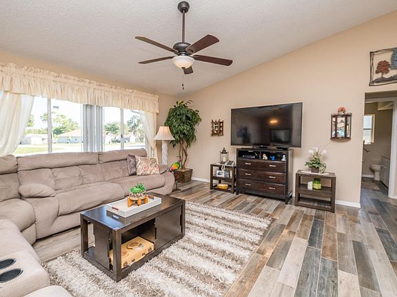 Just pack your bags and move right on in to this gorgeous updated home! There is new tile through out the entire living area along with a completely updated kitchen. The screened in patio is a Florida homeowner's dream, it has beautiful pavers and plenty of area for entertaining. If back porch sitting is what you enjoy then you will also love the airconditioned Florida room. It has glass doors that slide ALL the way open to give you quick access to the huge SPA! The roof was redone in 2011 and the AC and Hot Water heater were replaced in 2018. You really have to see this charming house for yourself!