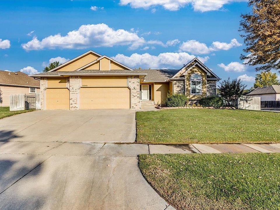 Near Maize & Maple, situated on a larger corner lot in the Lexington neighborhood of Goddard's school district, is a perfectly move in ready 4 bedroom, 3 bath, 3 car garage home. Upstairs boasts 3 bedrooms, 2 baths and main floor laundry, and downstairs you will find an additional bedroom, bathroom, large family room plus plenty of storage. This home has upgraded engineered wood flooring and within the last couple years a new roof and a/c system. Outside you will find a perfectly manicured lawn that has an irrigation well and sprinklers plus a large backyard patio space. This home has super easy access to Kellogg and all the shopping and dining along Maize road, and is just waiting for its next family to fall in love with it!