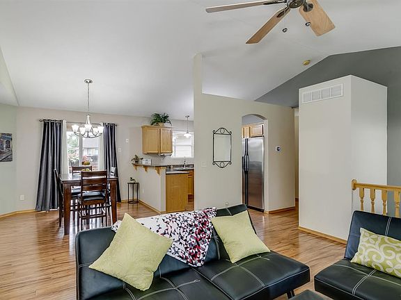 Specials pay out this year in this move-in ready home! Solid surface flooring on entire first floor! Granite kitchen with stainless appliances and refrigerator stays! Master bath includes two sinks, soaker tub and separate shower. Main floor laundry. Fully finished viewout basement holds large family room, full bath, and two bedrooms each featuring walk-in closets. Beautifully landscaped and fenced yard with sprinkler system. Brand new roof! In addition to the deck off the kitchen, you can also relax outdoors on the charming and spacious front porch! This well kept home has darling curb appeal, and is located towards back of a low-traffic cul-de-sac. Enjoy the neighborhood amenities just down the street! Great pool, playground, and beautiful green space and neighborhood lake. Goddard school district. This is a fantastic home and a great value in a very desirable neighborhood.