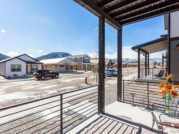 Modern Living - The Harvard floor plan offers 2,048 sq. ft. of thoughtfully designed space with high-end finishes and spacious rooms. The open-concept main level features a stylish kitchen with soft-close cabinets, stainless steel appliances, a large pantry, and an island with bar seating. First floor dining area, family room, living room, half bath, and laundry room. New pellet stove in living room. Upgraded closet organizers in pantry, laundry and primary bedroom. Upstairs, the primary suite boasts an en-suite bath and a private balcony with stunning mountain views. Two additional bedrooms one with an on suite bath and a shared full bath with ample storage and large closets, large office or reading area at the top of the stairs. Detached two-car garage, covered front porch, and a balcony. Low maintenance landscaped front and back yard with new patio and walkway. Located in Quartz at Poncha Meadows, a growing pocket community in Poncha Springs, these precision-built modular homes offer superior quality, energy efficiency, and durability. Close to skiing, dining, shopping, and outdoor recreation, this is the perfect home or investment opportunity. Experience modern mountain living today!