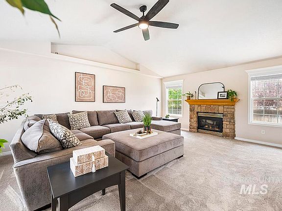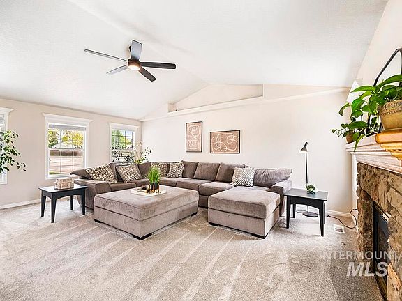 Timeless home that lives large with a 3-car garage and RV parking! Situated on a quarter acre lot featuring fresh updates including new interior and exterior paint, carpet, and modern fixtures throughout. Neutral tones and soaring ceilings welcome you into the bright and airy living area accented by a stone surround gas fireplace and ample natural light. Well-appointed kitchen and eating nook offer direct access to the covered patio for seamless indoor/outdoor entertaining. Main-level master retreat features ensuite with dual sinks and private access to the backyard oasis. Venture upstairs where three generous bedrooms and spacious bonus room offer flexible options for everyday living and gathering. Enjoy dining on the patio surrounded by mature landscaping and lush, green grass. Easy access to miles of Ridge to Rivers hiking trails, minutes from the Eagle BMX Park and convenient community amenities such as a pool, tennis court, clubhouse, playground and open, green space throughout the neighborhood.
