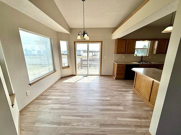 A great 5 bedroom, 3 bath home in the fantastic Harvest Ridge neighborhood and Goddard school district. A large front porch greets your guests! Through the front door new luxury vinyl flooring covers much of the home and there’s new neutral paint throughout! This home gets so much natural light and the main floor living spaces have fantastic vaulted ceilings. The open living room, dining area with bay window and kitchen with bar seating are wonderful for entertaining. Through the sliding door you’ll find an elevated wood deck and a good-sized backyard with lots of possibility. The master bedroom feature the new luxury vinyl flooring, master bath with a double sinks vanity and walk-in closet. There are also 2 other bedrooms, a hall bath and a laundry room to round out the main floor. The basement family room has new drywall and luxury vinyl flooring. There are 2 more bedrooms, a bonus room and another full bathroom in the basement, as well. All you need to do is add trim and some final touches to make it your own. This neighborhood has great sidewalks, a beautiful pond and a nice playground area. Come see this home today!