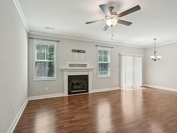 Step inside this beautifully maintained home and discover a layout that blends comfort, functionality, and charm. The spacious first-floor primary suite offers both privacy and convenience, complete with a generous walk-in closet and a relaxing garden tub. The open-concept main level features a seamless flow between the kitchen, dining, first floor laundry room, and living area complete with a gas log fireplace. Upstairs, you'll find three additional bedrooms, including one with a walk-in closet, along with a large full bathroom featuring a double vanity. A versatile loft area offers endless possibilities—ideal for a home office, playroom, or creative space. You'll also appreciate the oversized linen closet for added storage. Enjoy mornings on the classic rocking chair front porch and afternoons in the fenced backyard, shaded by mature trees and ready for outdoor living. Additional highlights include stainless steel kitchen appliances, soft-close cabinetry throughout, and a whole-home water filtration system. Located on a generous lot in a welcoming community, this home offers the perfect blend of indoor comfort and outdoor space!