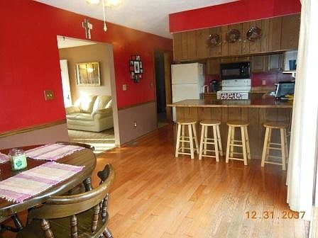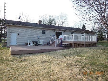 Enjoy wooded views from the large composite deck off the rear of the home. Hardwood floors throughout the kitchen and dining areas. Large garden tub and shower in bath, ceramic tile flooring. Newer carpet and a fireplace. A MUST SEE!