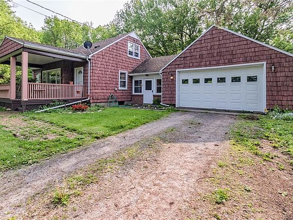 Enjoy peaceful country living without the hassle of a large yard. Wildlife abounds on tree-lined lot. Fenced area is great for pets or entertaining. Enjoy the breathtaking sunrises from the deep front porch. Large 3 season room has a wood burning fireplace and built in shelving and attaches the 2 car garage to the house. Hardwood floors throughout, upstairs master suite has walk in closets, an office/nursery and room for a bathroom addition. 2-1st flr bedrooms and full bathroom offer 1 floor living. Large eat-in kitchen looks out onto serene back yard. The living room has pellet stove. New furnace and central air. Clean basement and shed for storage. Buyer can choose carpet with $500 carpet allowance to be installed prior to closing.