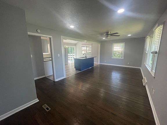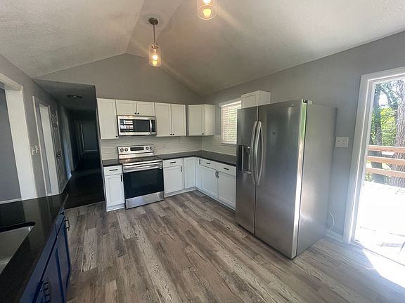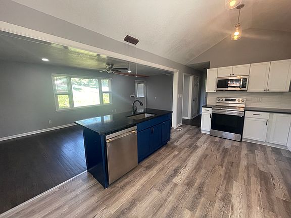 Come see this unique rental with fresh paint, new kitchen and large rooms! This house has a kitchen island with the open concept leading into the living room. This house offers a 2 car attached garage along with a driveway that wraps around to the backwith four additional parking spaces! This open concept house has plenty of space for entertaining. It offers a back deck off of the kitchen along with a fenced in area! You don't want to miss this! Schedule a showing now. Tenant is responsible for all utilities at the time of move in. Parking is private with a 2 car garage. Washer and dryer hook ups provided (units are not provided). Pets are welcome!