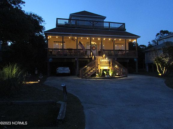 Perfect island retreat at The Point in Emerald Isle! Well maintained and updated over the years by original owner. Private wooded .292 acre lot features amazing live oak trees and complete privacy behind the house. Short walk to the ocean and The Point to enjoy amazing sunsets and wide, natural beaches. Full covered front porch with plenty of room for rocking chairs and a full screened-in back porch to enjoy your privacy and enjoy outdoor dining. Open concept main level with living, dining and kitchen. Three large bedrooms and additional office/room and two full baths complete the first level. Second level 22x18 bonus room with wet bar, and full wrap around decking for grand vista views and entertaining. Ground level includes 2 storage areas, covered parking under the house for 2 vehicles along with gathering areas to entertain or just relax. Emerald Isle bike path is right around the corner. Home has never been a rental would make a perfect Airbnb & VRBO with office having a closet and bonus room for extra guest. Priced below appraised value of $890,000.