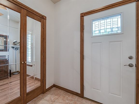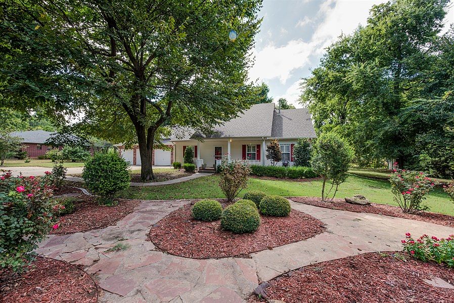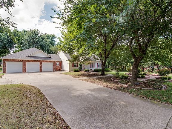This home has been loved! A very special acreage with many mature trees in a very private area! Beautiful landscaping! Large porches and patios. Open floor plan with spacious liv and corner fireplace. Wood floors, plantation shutters, crown molding. Cook's kitchen is super sized. Loads of counters and cabinets. Granite, pantry, new stainless appliances (upgraded). Large dining area with room for large table and hutch! Master suite features kingsize bedroom and bath. Bathroom has his and hers closets and vanities. Whirlpool tub and tiled walk in shower! So much storage in this home! Study and 3 bedrooms, 2.5 baths! 3 car garage. Carl Albert schools, Soldier Creek elementary