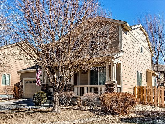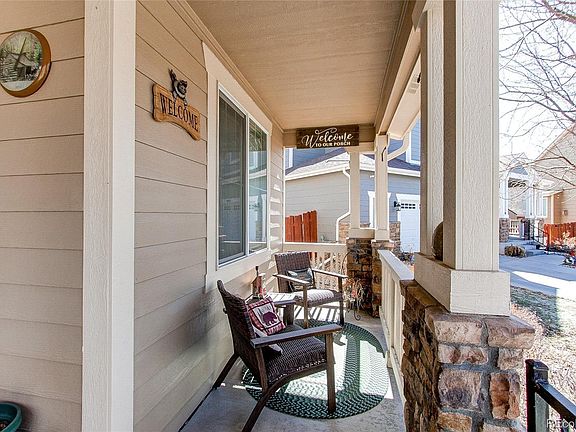 Welcome home to this immaculately well-maintained 2 story home in the Turnberry/Linden community. The covered front porch is an inviting entry into the open floor plan. The formal living & dining areas are on the right & are open to the gleaming wood floored hallway that leads to the rest of the main level. The half bath is at the opening of the family room & has a custom antique furniture vanity & vessel sink. The spacious family room has high open ceilings & many windows to bring in an abundance of natural light including an inset window area which is perfect for hanging plants. The eat-in kitchen is open to the family room & has a generous space for a table & chairs as well as a kitchen island. Beautiful wood cabinets with updated countertops & the pantry graciously provide for easy & efficient food preparation. The stainless steel appliances are conveniently located just steps from the food preparation center. Both the kitchen & family room have beautiful wood floors. The laundry room with a laundry sink enters from the kitchen & exits into the drywalled 3 car tandem garage with an exterior passage door exit to the back yard. A beautiful wooden rail staircase leads to the second level & opens into the loft which overlooks the family room. The primary suite is an ensuite with a large walk-in closet, 5-piece bath including a soaking tub, double sinks, & private shower. There are two additional good sized bedrooms with ample closet space & a large full bath that services the two bedrooms. All the bedrooms have ceiling fans. The basement is unfinished providing great storage & is ready for your desired finishes. The back yard can be entered through sliding glass doors in the kitchen or through the garage. There is a patio for the BBQ grill, eating area & lounging. The back yard is fully fenced with a front & back sprinkler system. This home has it all including one of the few homes with a beautiful view of the Rocky Mountains. This is a pleasure to see.