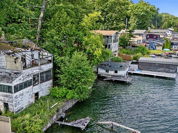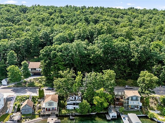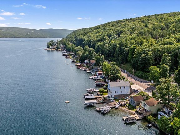 Here's your affordable chance to own 100+ ft of Keuka Lake frontage! Bring this deep water lot back to life! Positioned in the hub of lake life past the end of the Bluff near Hammondsport, this lot is double the amount of lake frontage compared to many of the area lakeside lots. It offers deep roadside parking, while holding even more space potential utilizing the included wooded lot across the road. Home is in need of extensive repair or tear down. Selling AS IS. Please do not enter the property without an agent present.