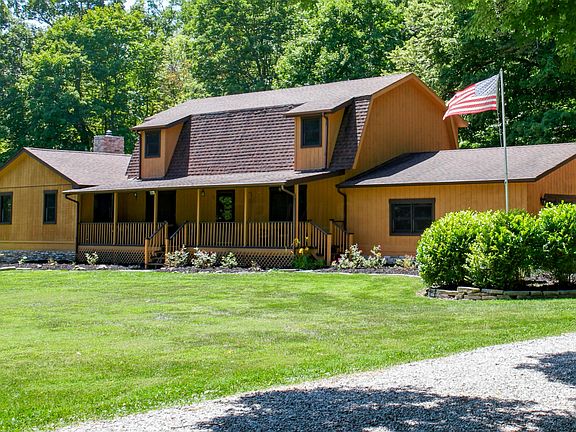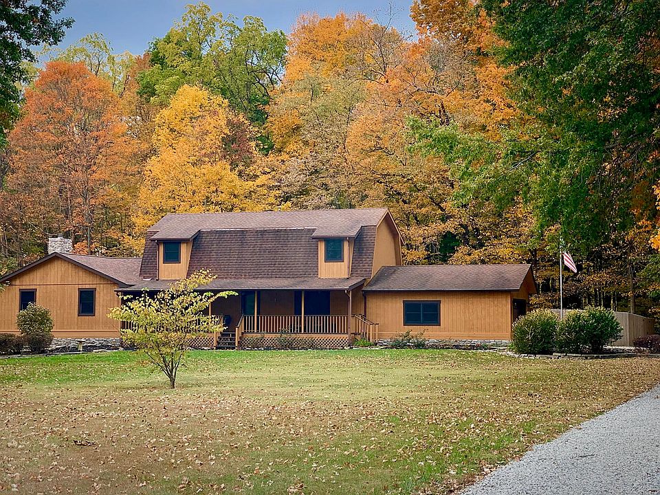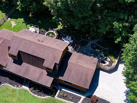 Over 7 Beautiful Acres, mostly wooded, Tranquil Country Living Close to the City. Unique 2 Story, 3 Bedroom, 3 Bath. Fresh paint, new carpet, heated floors in bathrooms upstairs. Recently finished 750 sf great room w/privacy doors and 12' stone fireplace w/restored barn wood mantle. Large, newly stained two-tier deck, professionally landscaped with fountains, over 250' of fenced in backyard, perfect for pets, children & entertaining. 70% efficient Montgomery EPA Certified Wood Fireplace. 27 x 36 Outbuilding. Porch, deck & exterior of house freshly stained this summer. Over $150,000 additions and upgrades, must see to fully appreciate.