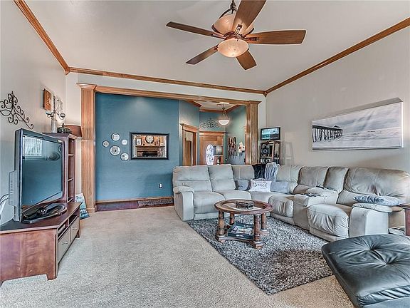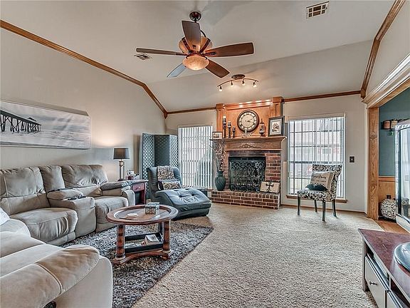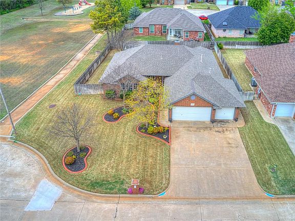 Rare find in highly sought after Windsong! This home has been very well taken care of and is move-in ready. Well designed floor plan with 2,046 sf, 4 bedrooms, (4th bedroom would make a great study) 2 bathrooms, & a 3 car garage. Other features include high ceilings, fireplace, crown molding, tons of storage, lots of natural light, newer carpet, paint, fixtures, and appliances, spacious bedrooms, master suite with spacious closet, soaking tub, & walk-in shower, indoor laundry room, large fenced backyard with a covered patio, storage building, and storm shelter. Located close to shopping, dining, parks, movie theater, highway access, Tinker AFB, Boeing, Rose State College, and other great community amenities. Call today for a private or virtual showing.