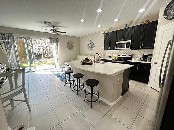 3 bedroom, 2.5 bathroom, 1 car garage townhome in Edgestone at Artisan Lakes, with a compact design and efficient use of space. This open concept first floor includes a generously sized kitchen with a full stainless steel appliance package (range, microwave, dishwasher and refrigerator) and an expansive island. Adjacent to the kitchen is a large great room with a dining space, a powder room for guests and sliding doors to access the rear patio. There is extensive ceramic tile flooring throughout the first floor and in all wet areas on the second floor. Upstairs you will find the master suite with an en-suite bathroom with a double sink vanity, glass enclosed shower and a walk in closet. Down the hall are the 2 additional bedrooms and second full bathroom. The laundry closet is also on the second floor for added convenience. Note: the home is not furnished Complete lawn maintenance, including mowing, shrub pruning, irrigation system service, turf and plant fertilization and plant pest control, is provided by the HOA.