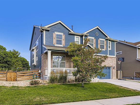 Welcome to this stunning home in Reunion, corner-lot backing to a serene pocket park/open space! This bright and spacious 4-bedroom, 3-bath home features an open floor plan with soaring ceilings and a large family room featuring a cozy gas fireplace. The gourmet kitchen includes a large multi-use island, stainless steel appliances, subway tile backsplash, pantry, and full dining area. Adjacent mudroom offers built-in counters, cabinets, and closet storage. Garage features 3-car tandem parking. Upstairs you will find a generous loft, perfect for guests, play or study. The spacious primary suite has a private 5-piece bath and dual walk-in closets. Two additional bedrooms complete the area and are connected with a convenient Jack and Jill bath. The full basement is plumbed and ready for your personal build-out and design. Freshly painted in summer 2025, the home has a peaceful front porch and back patio for additional outdoor living. Walking distance to many of Reunion's provided amenities, including pool, rec center, parks, and trails. Quick access to DIA, schools, shopping, and dining. Don’t miss this exceptional opportunity—schedule your showing today!