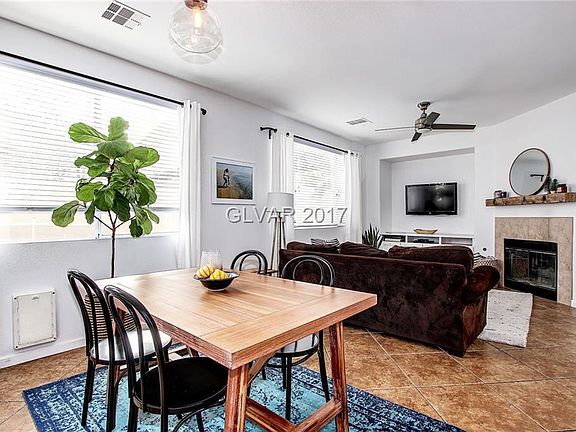 Bring your visions to life in this beautiful 3 bed Summerlin home! Enjoy the soaring ceilings, tile flooring, and soothing color palette. Cozy tiled fireplace in the family room! Large eat in kitchen boasts rich espresso cabinetry, tile counters, and SS appliances. Floor to ceiling cabinets in garage! 3 spacious bedrooms w/plush carpeting. Master has walk in closet & spa like bath. Backyard oasis w/pool, spa, and low care landscape! A MUST SEE!