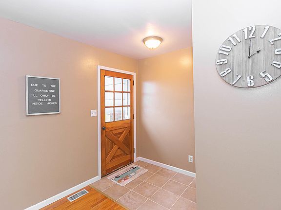 Beautiful country home on just under 2 acres with a stocked pond and outbuilding! Interior features include 4 BR, 1 Full and 1 Half bath, white kitchen cabinetry with peninsula and accent cabinetry, open concept dining space with built ins, gorgeous oak hardwood flooring. Upper level features 3 bedrooms and a full updated bath. Lower level features additional bedroom, family room with fireplace and views of the pond, laundry room and storage area. 2 car attached garage as well as a 36x24 outbuilding with concrete, electric, and plumbed for heat. Outdoor features of this property include a front deck, a rear deck with views of the beautiful stocked pond, 2 docks, 2 water fountains, fishing shack, and outdoor storage shed. Recent updates include stain on front and back decks, paint, and gravel in drive. Propane tank is owned and included in the sale. This property is pet friendly, invisible fence wire is buried and ready for transmitter. This home is well loved and ready for new owners!