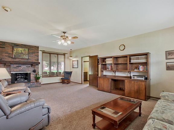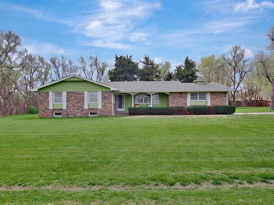 Country feel with convenience to everything in West Wichita-1.71 acre wooded lot ranch home in Maize Schools. This one owner brick home is your serene oasis. No specials, 31 x 20 detached garage/workshop with electricity and gas heat, 43 x 40 barn, dog run/dog house and full tennis court concrete pad to do as you wish. As you enter the home the oversized living room features a picture window to your private backyard and a focal point all brick fireplace. Lots of room for family and friends to gather in this large scale living room. Kitchen is convenient to living room and dining room and has walk in pantry, plenty of counter space and is adjacent to the dining room. Dining room also has a picture window with views out back, door to backyard and a few steps to the fabulous covered patio. Master bedroom has full bath/shower, large walk in closet and room for king sized furniture. Two additional bedrooms, full bath with tub/shower and storage are also on the main level. Basement is unfinished and offers storage and great potential to finish additional living space. Covered back patio spans the length of the home and is the perfect spot to relax and enjoy nature or entertain. Majority of the yard is on sprinkler and well and is partially fenced. With some buyer repairs the full sized tennis court concrete pad could be RV parking, pickle ball court, basketball court, new building or play area for outdoor fun. Barn has storage and capacity for all of your projects, workshop/detached garage has electricity, gas heat and two roll up doors. Location is convenient to shopping and restaurants at New Market Square, hospitals, schools, Eisenhower Airport and highways. Welcome home! Home being sold AS IS.